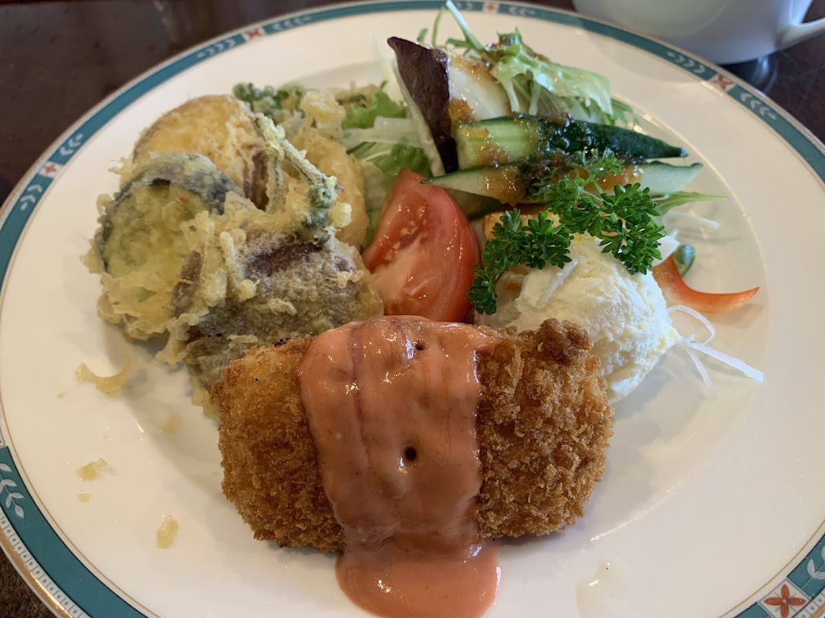 The menu at Kōhīan Mai is a delightful tapestry of flavors, reflecting both local ingredients and a touch of culinary artistry. Diners have raved about dishes such as the vegetable tempura salad, which showcases fresh, crispy vegetables that are light yet bursting with flavor. Another popular highlight is the kanikurimu korokke (crab cream croquette), served steaming hot and crisp on the outside, releasing a rich, creamy crab filling that dances on the palate. For those with a sweet tooth, the cake and coffee set offers a luxurious conclusion to your meal, featuring an array of handmade desserts, including a sumptuous cheesecake that leaves customers asking for more.